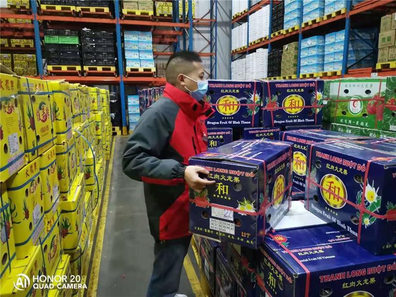 王明飛介紹說,每個產品都有自己的鮮度密碼,為了讓產品最大化保鮮,以最好的狀態進入賣場,永輝生鮮倉儲園區實行嚴格的倉管制度,針對不同的產品特性,建立了不同的保鮮小庫房。“以水果為例,蘋果、火龍果、榴蓮、進口果、散裝軟果都不允許混放,一是防止催熟,二是避免串味。同一產品熟度不同,也要分開儲存,或者及時跟門店溝通調整發配。”