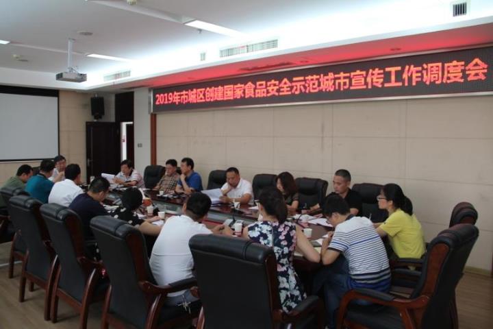 為全面貫徹2019年全市食品安全工作會議精神,把創建國家食品安全示范城市工作引向深入,在市城區營造人人關心、人人參與的濃厚氛圍,切實提升人民群眾對創建工作的知曉率、支持率和滿意度,7月3日,市市場監督管理局組織召開了市城區創建國家食品安全城市宣傳工作調度會。市市場監督管理局黨組書記、局長董明輝出席會議并講話。武陵、鼎城、經開區、柳葉湖市場監管部門主要負責人及市市場監管局有關科室負責人參加了會議。