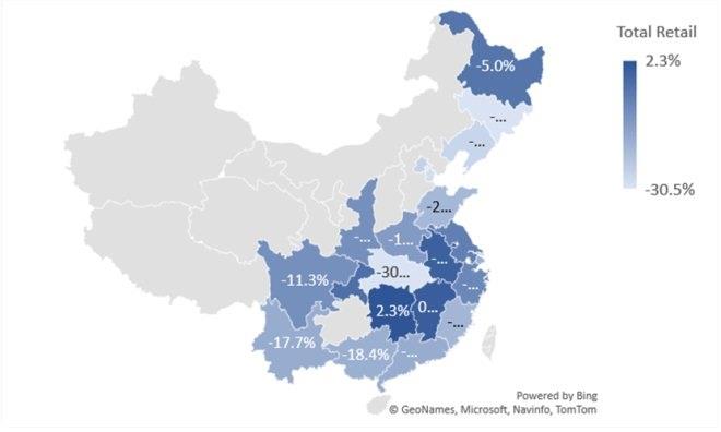 與上月相比,總體零售和服飾零售都有積極的增長,同比分別增長了31.6%和39.5%,零售消費勢頭繼續保持良好趨勢。