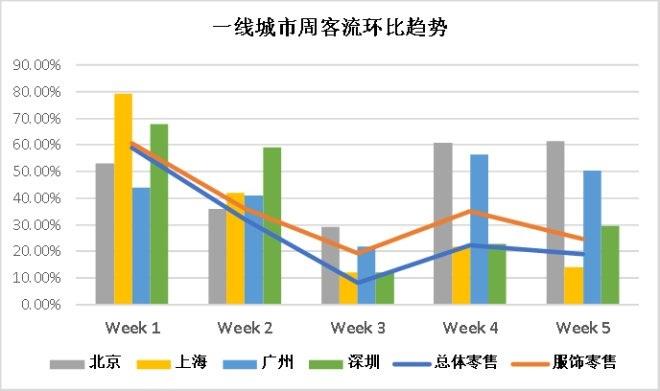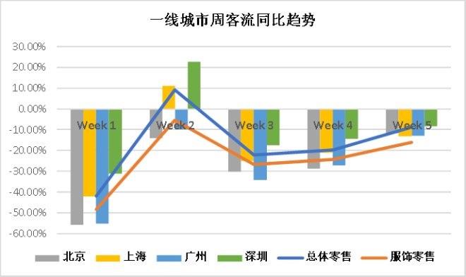 一線城市周客流表現