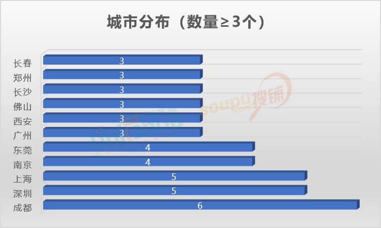 其他諸如重慶、嘉興、寧波、蘇州、濟南、德州、廈門、衡陽、蘭州等城市的開業量也均在2個及其以上的水平。