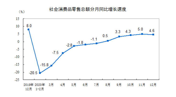 2020年12月份社會消費品零售總額增長4.6%