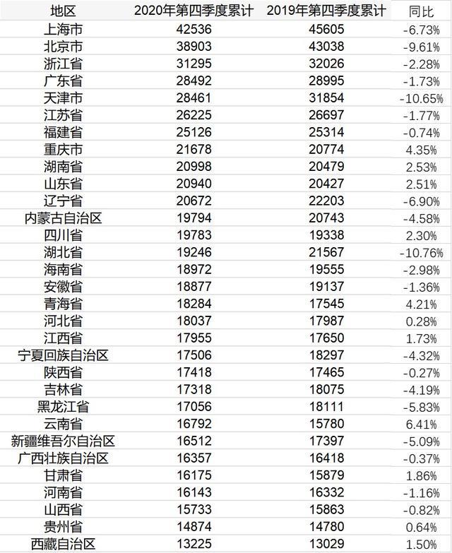 2020年,共有11個省份的居民人均消費支出超過2萬元,分別是上海、北京、浙江、廣東、天津、江蘇、福建、重慶、湖南、山東和遼寧。 ...