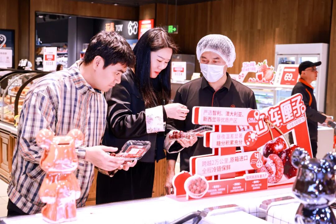 隨著冬季消費旺季的到來,永輝依托其源頭直采的供應鏈優勢,正將時令鮮果高效引入全國市場。其中,智利車厘子的上市尤為引人注目。永輝采購團隊深入智利黃金產區,實施從枝頭開始的嚴格品控,并通過定制化的全鏈路保鮮方案,包括采摘后立即預冷鎖鮮、采用專用保鮮包裝與0-2℃冷鏈海運閉環,實時監控溫濕度,確保果實以接近采摘時的鮮活狀態抵達門店。據悉,本產季首批海運高品質車厘子已成功登陸,首發的主力品種桑提娜(Santina)果形勻稱、色澤深紫、口感脆甜,平均單果重達8.6-9.5克。自10月底上市以來,車厘子銷售表現亮眼,預計全年采購量約300柜,后續還將有拉賓斯、布魯克斯、柯迪亞瑞吉娜等品種陸續上市。