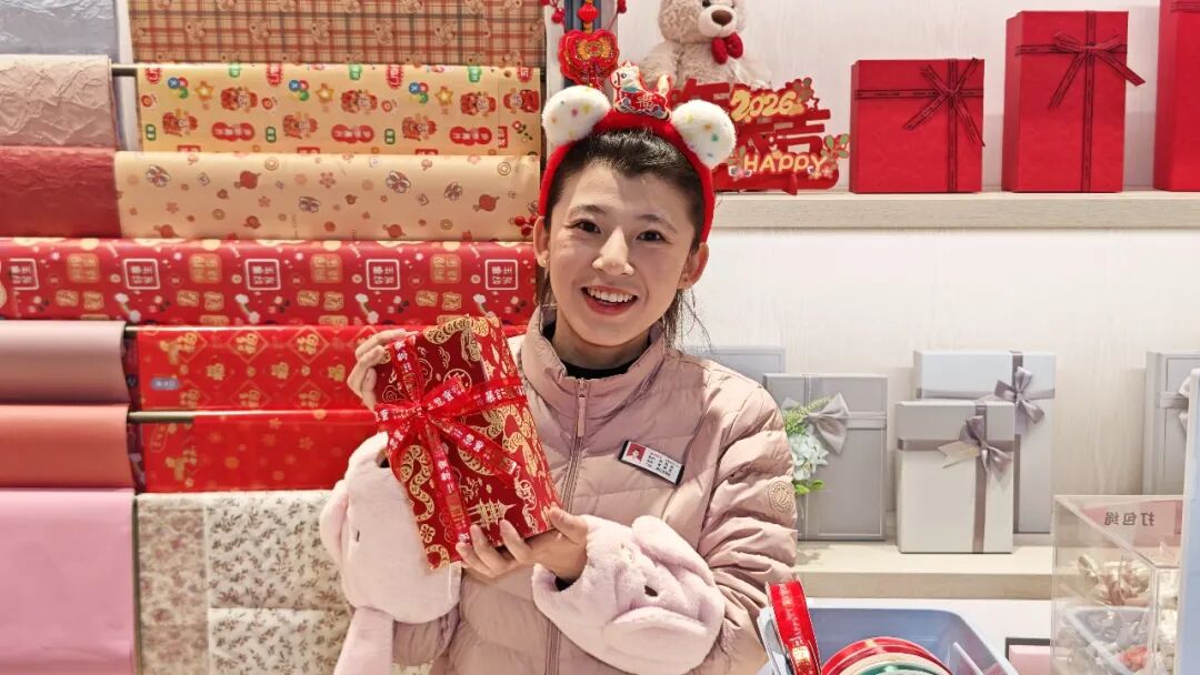 永輝北京魯谷店的禮盒專區,一位年輕顧客正在仔細比較兩款堅果禮盒。她最終選擇了永輝與森寶聯名的“駿馬獻瑞”禮盒,“設計有年味,品牌也熟悉,價格很合適”。不遠處的服務臺前,工作人員正熟練地為顧客選購的草莓和車厘子進行禮品包裝。紅色禮盒配上金色絲帶,旁邊還有一張手寫的祝??ㄆ?/span>——這是永輝今年新增的“手寫祝福”服務,讓標準化商品多了份人情溫度。
