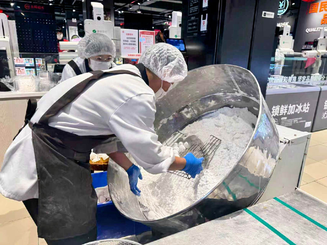 在速凍湯圓占據市場主流的當下,永輝今年在全國部分調改門店推出了“現滾元宵”專區。將“滾粉”的全過程都在消費者眼前完成,讓制作過程本身成為一道風景,也讓顧客在購物之余,重溫記憶中的元宵味道。
