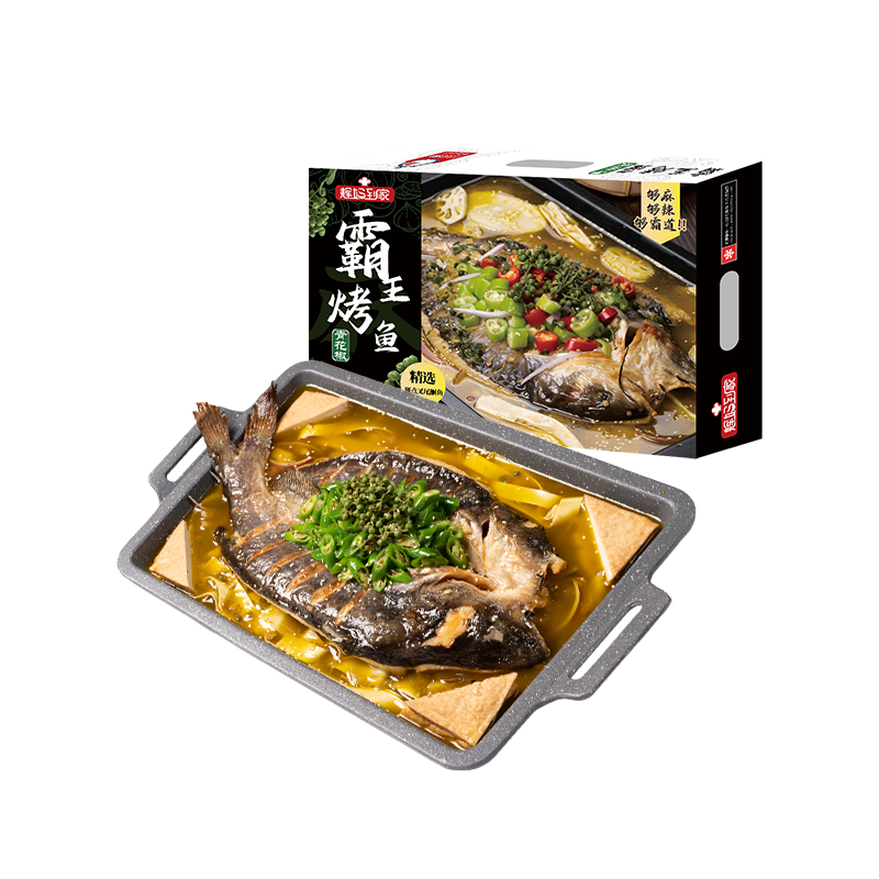 以新品“輝宴系列”中的霸王烤魚為例,食材上精選了刺少肉厚的清江魚,經過大廚工藝預調理后以錫紙盒包裝,消費者購買后無需解凍,加熱10分鐘即可食用,讓廚房小白免去洗、切、煮等流程,在家就能輕松享受到大廚手藝。