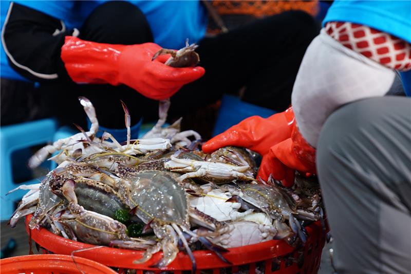 一般當天下午捕撈的梭子蟹,在第二天凌晨即可在周邊省區的永輝門店內上架銷售。