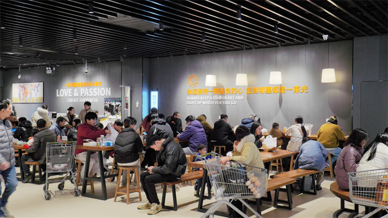 “我以前就是這家超市的??停瑳]想到調改后變化這么大?,F在熟食產品種類很多,不想做飯來這邊買點現成的,買完單在顧客休息區就可以用餐,方便了很多。”剛剛下班的張女士一邊挑選商品一邊說。而永輝超市新增的顧客休息區坐滿了用餐和休息的顧客,休息區里洗手池、濕紙巾、直飲水、一次性水杯、血壓計、身高體重測量儀等便民設施一應俱全,除了用餐的顧客,也有不少顧客在休息區量身高體重、測血壓。