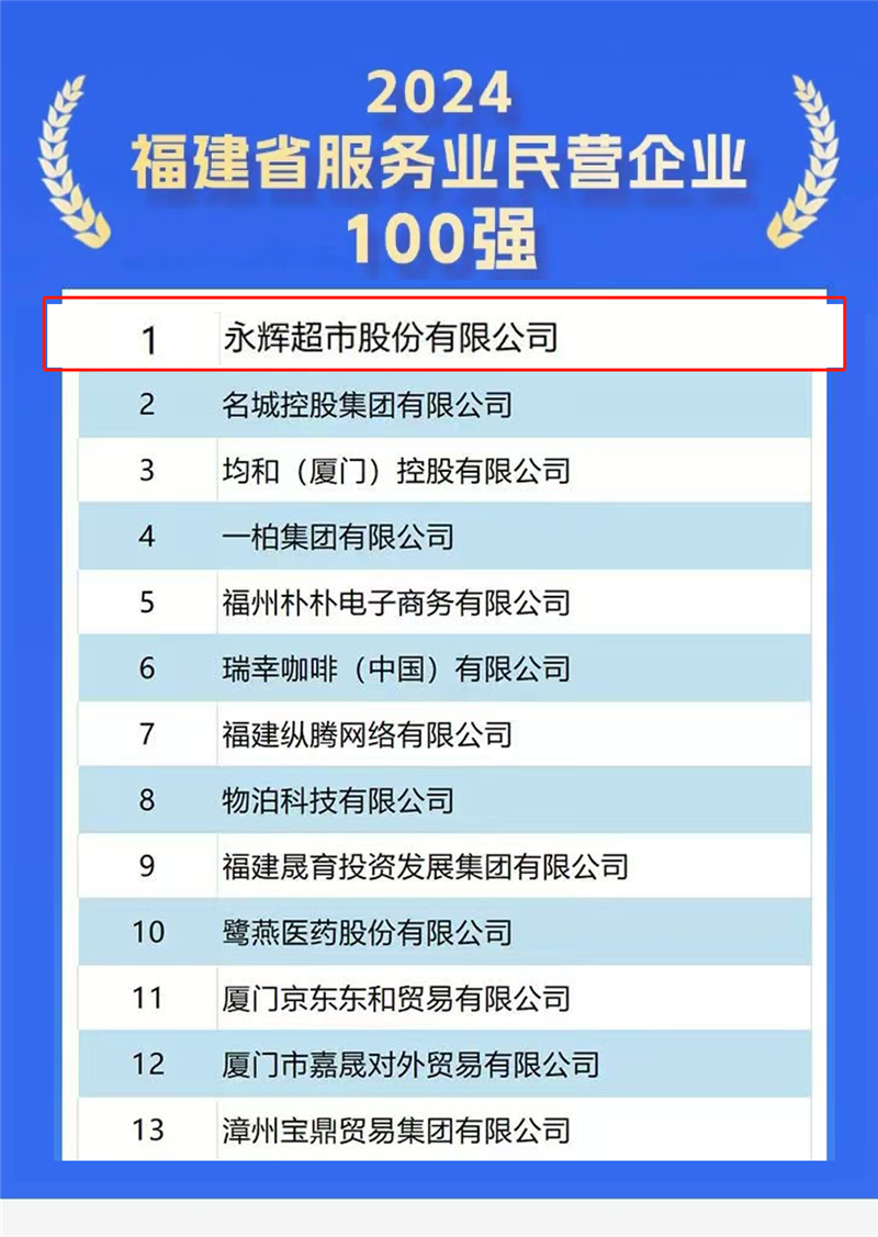 永輝超市連續7年蟬聯福建民營企業100強