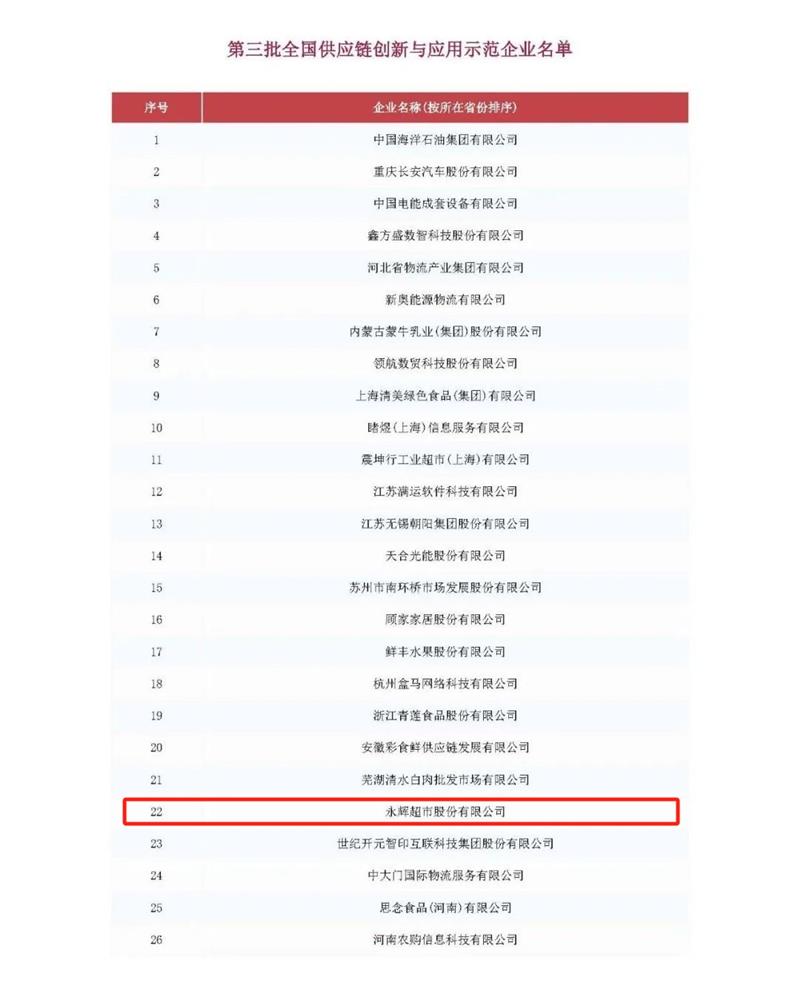 永輝超市入選全國供應鏈創新與應用示范企業名單