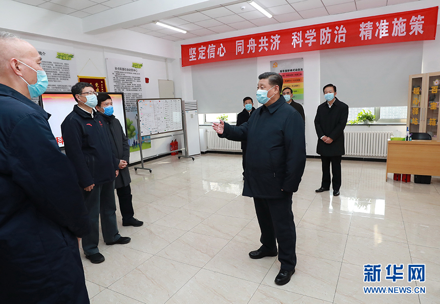 2月10日,中共中央總書記、國家主席、中央軍委主席習近平在北京調研指導新冠肺炎疫情防控工作。這是習近平在朝陽區安貞街道安華里社區,了解基層一線疫情聯防聯控情況。 新華社記者 鞠鵬 攝