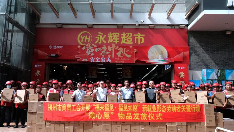 福州市商貿工會開展“福來福見、福見如愿” 新就業形態勞動者關愛行動物品發放儀式