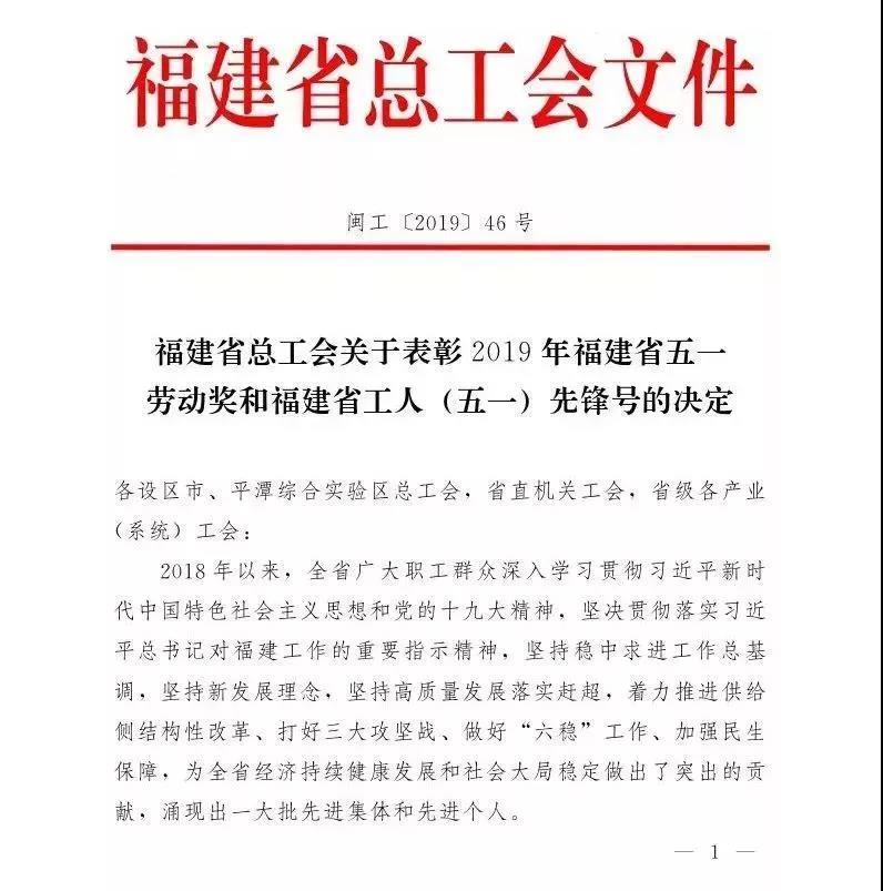 重磅!2019年福建省五一勞動獎先進集體與個人名單